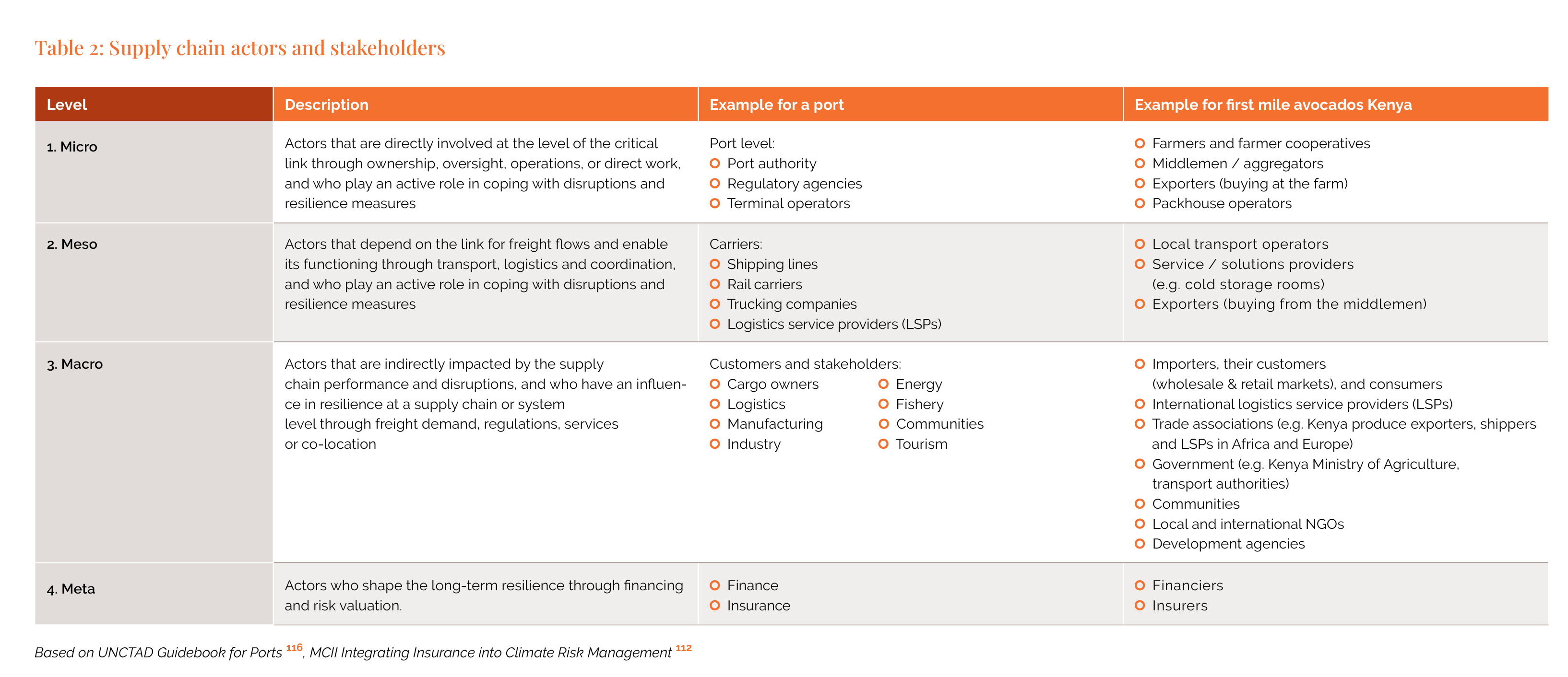 Table 2: Supply chain actors and stakeholders